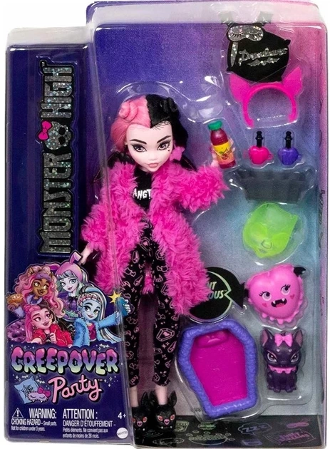 MONSTER HIGH Lalka Piżama Party Draculaura ZESTAW Creepover AKCESORIA HKY66