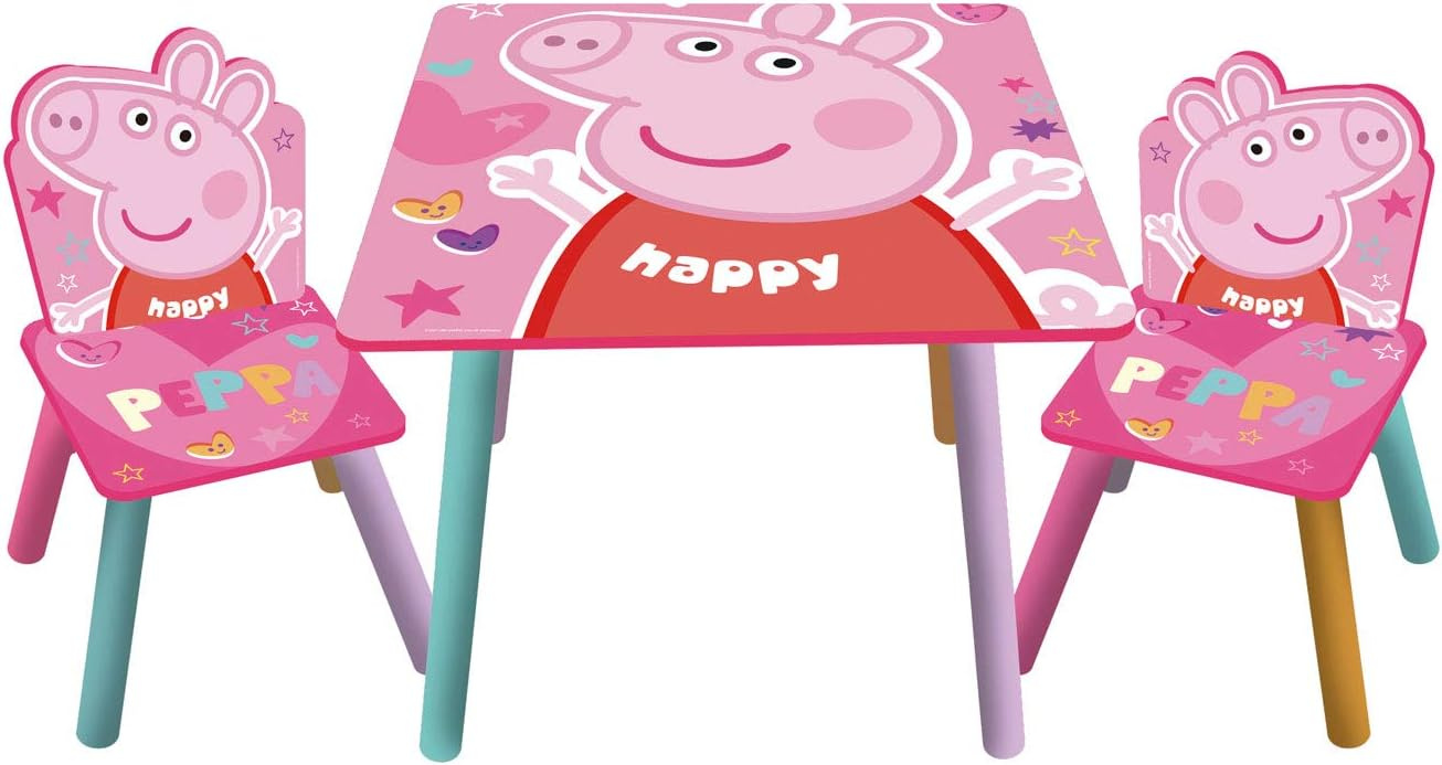 PEPPA PIG ŚWINKA STOLIK STÓŁ DREWNIANY 2 KRZESŁA DLA DZIECI MEBLE