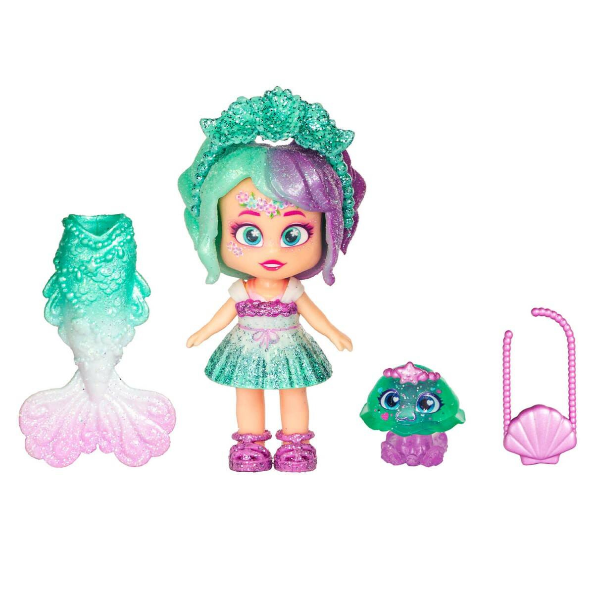 Każda z syrenek KookyLoos ma własną muszlę, która jest zarówno sceną do zabawy, jak i małą torebką, którą możesz zawsze mieć przy sobie! W środku muszli czeka mnóstwo akcesoriów i unikalny pupil-zwierzątko. Dodatkowo do każdej laleczki dołączony jest syreni ogon, który możesz w każdej chwili zdjąć, by odsłonić nogi KookyLoos i przebrać ją w ultramodny strój!
