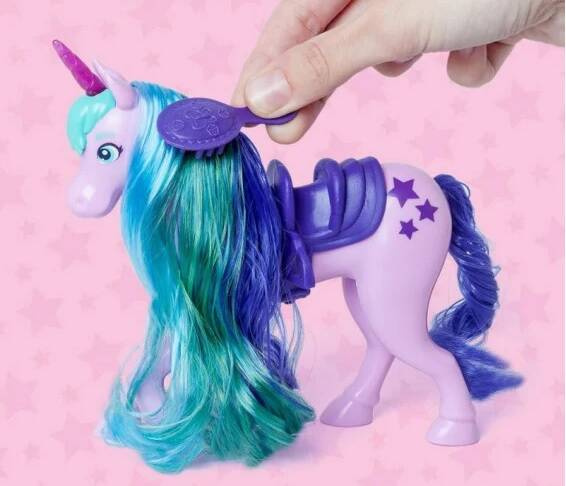 - CZESZ ICH WŁOSY – Włosy jednorożców to prawdziwe włosy! Stylizuj go pędzlem i wypróbuj różne style