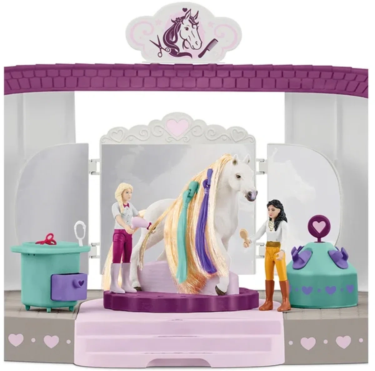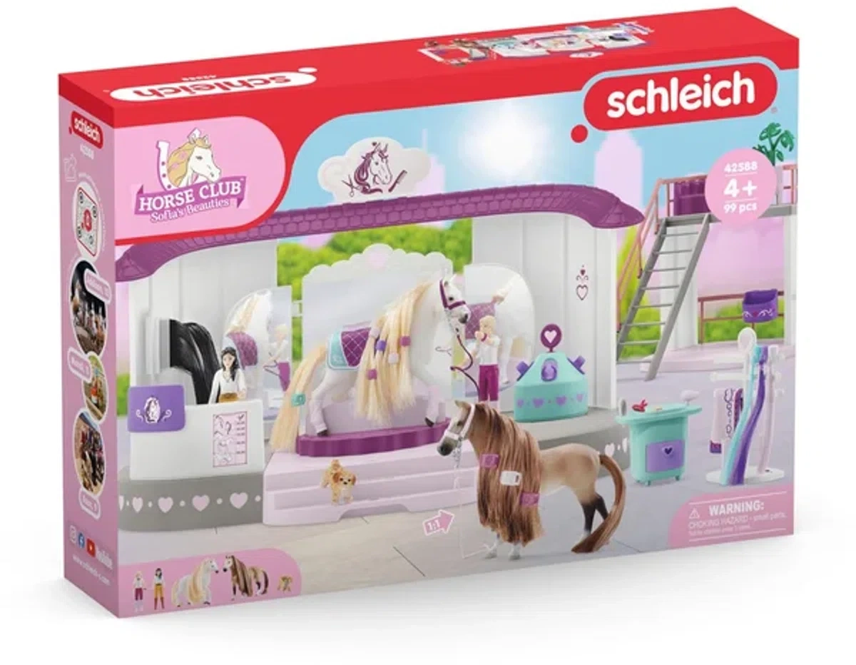 Salon Piękności to część magicznego świata HORSE CLUB Sofia's Beauties, idealnie pasująca do wszystkich koni z czesaną grzywą. Gotowy na zabawę?