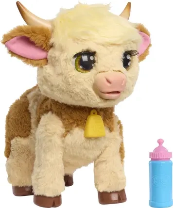 FurReal Maggie The Cow – Feed & Follow, Interaktywną pluszowa zabawka od marki Just Play. Jest to urocza, miniaturowa szkocka krowa, która reaguje na dotyk i dźwięki, oferując dzieciom realistyczne doświadczenie opieki nad zwierzątkiem.