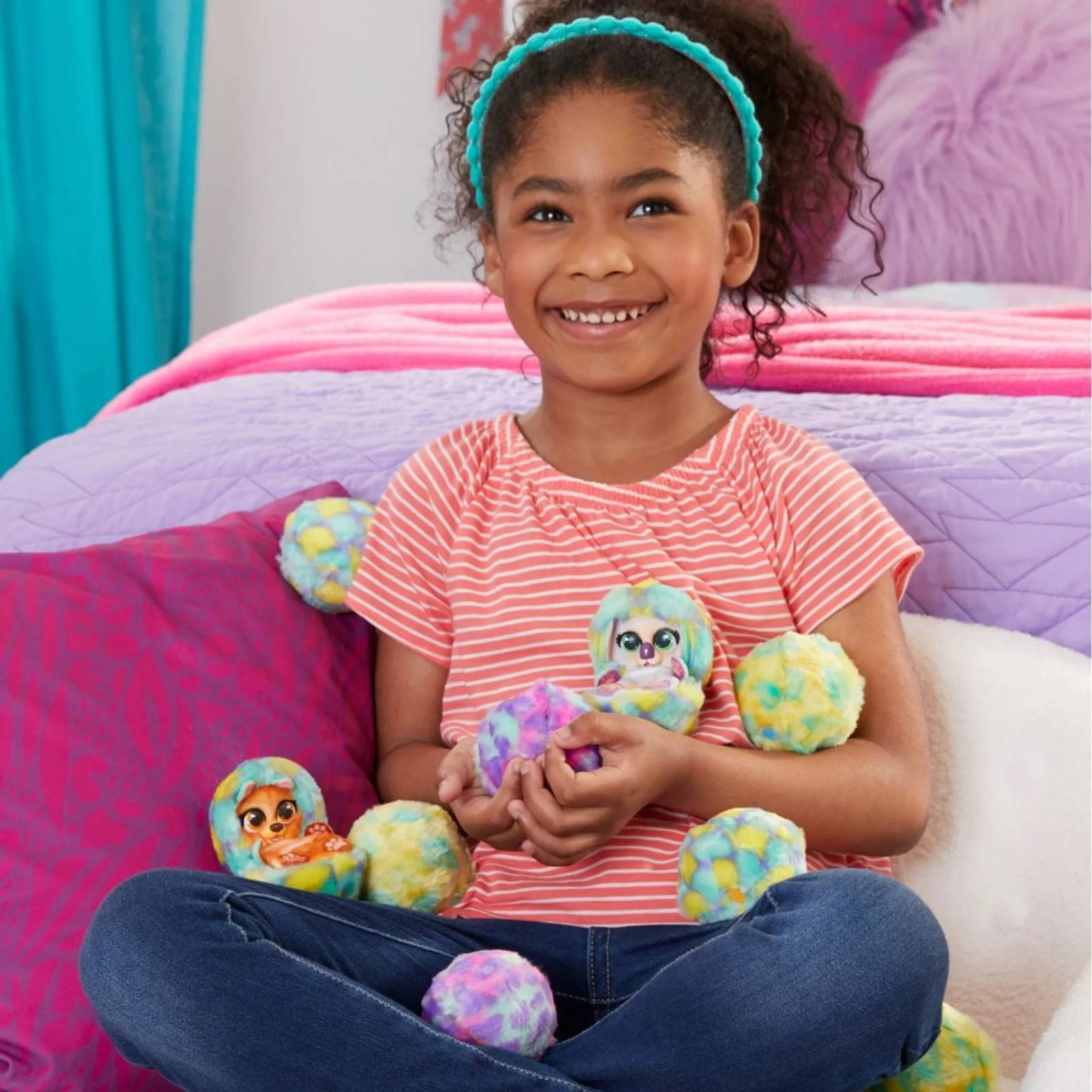 • W pudełku znajduje się jaskrawa puszysta kulka, aby odkryć, jakie zwierzątko jest ukryte wewnątrz, należy znaleźć specjalny przycisk.