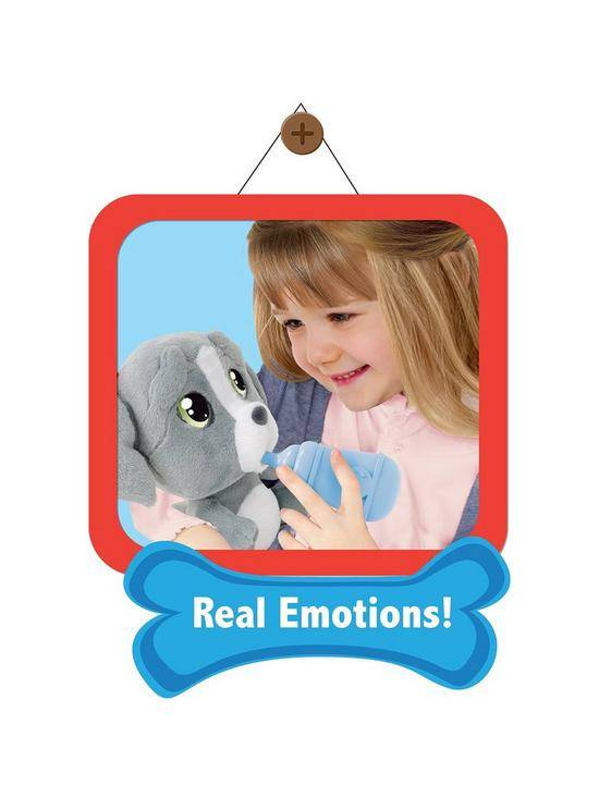 Do zestawu dołączona jest butelka do karmienia, a po posiłku oczka pieska napełnią się łzami!