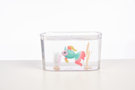 Udekoruj akwarium akcesoriami dołączonymi do zestawu - kolorowymi roślinkami według własnego pomysłu.