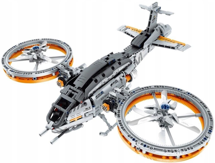 Klocki przedstawiają Gwiezdny myśliwiec - Futurystyczny model science-fiction. Kokpit otwiera się swobodnie, a śmigła można ręcznie obracać.