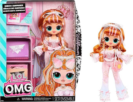 Lalka LOL OMG Wildflower – zapomnij o planach, zatrzymaj się i wąchaj stokrotki! Romantyczna Wildflower nigdy nie przestanie wyrażać swojej miłości do motyli, kwiatów i koloru różowego. Zresztą, spójrz na jej strój! Dzwony i gorset zdobią koronki, wstążeczki i kwieciste wzory. Och!