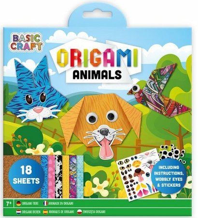 Zestaw do origami ZWIERZĘTA 18 wzorów + naklejki papier origami wyklejanka