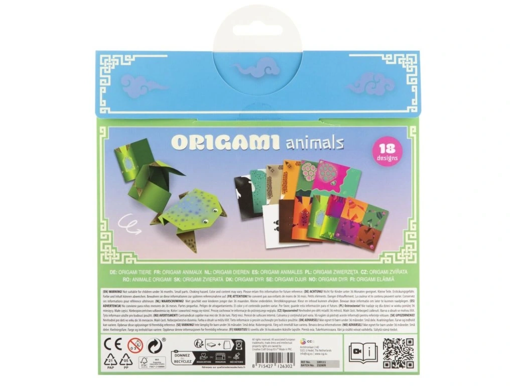 Zestaw do origami ZWIERZĘTA 18 wzorów + naklejki papier origami wyklejanka