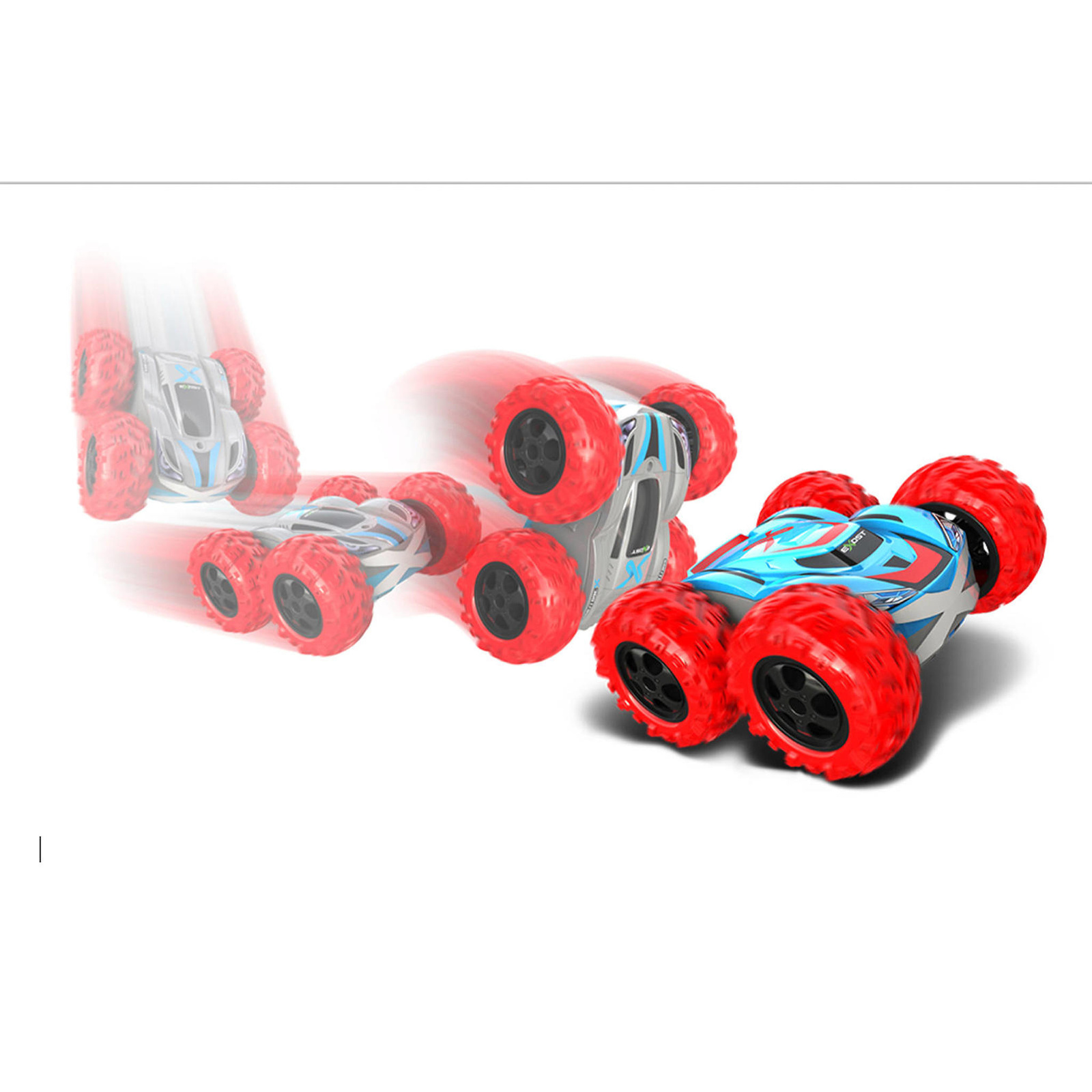 Silverlit Exost RC 360 Cross Zwrotność 360 stopni, bez trudu pokonuje każdą przeszkodę Z oponami na każdą nawierzchnię 2,4 GHz Prędkość: 12 km/h Zasięg do 25 metrów Kolor: niebiesko-czerwony