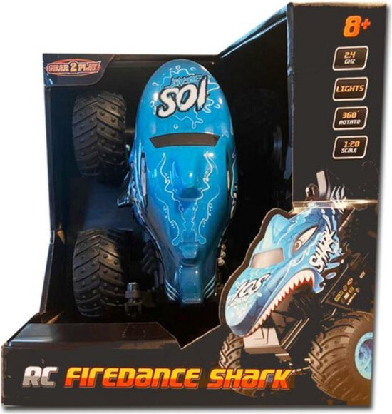 - Ten zdalnie sterowany samochód kaskaderski w skali 1:20 ma efektowny kształt nadwozia przypominającego rekina.