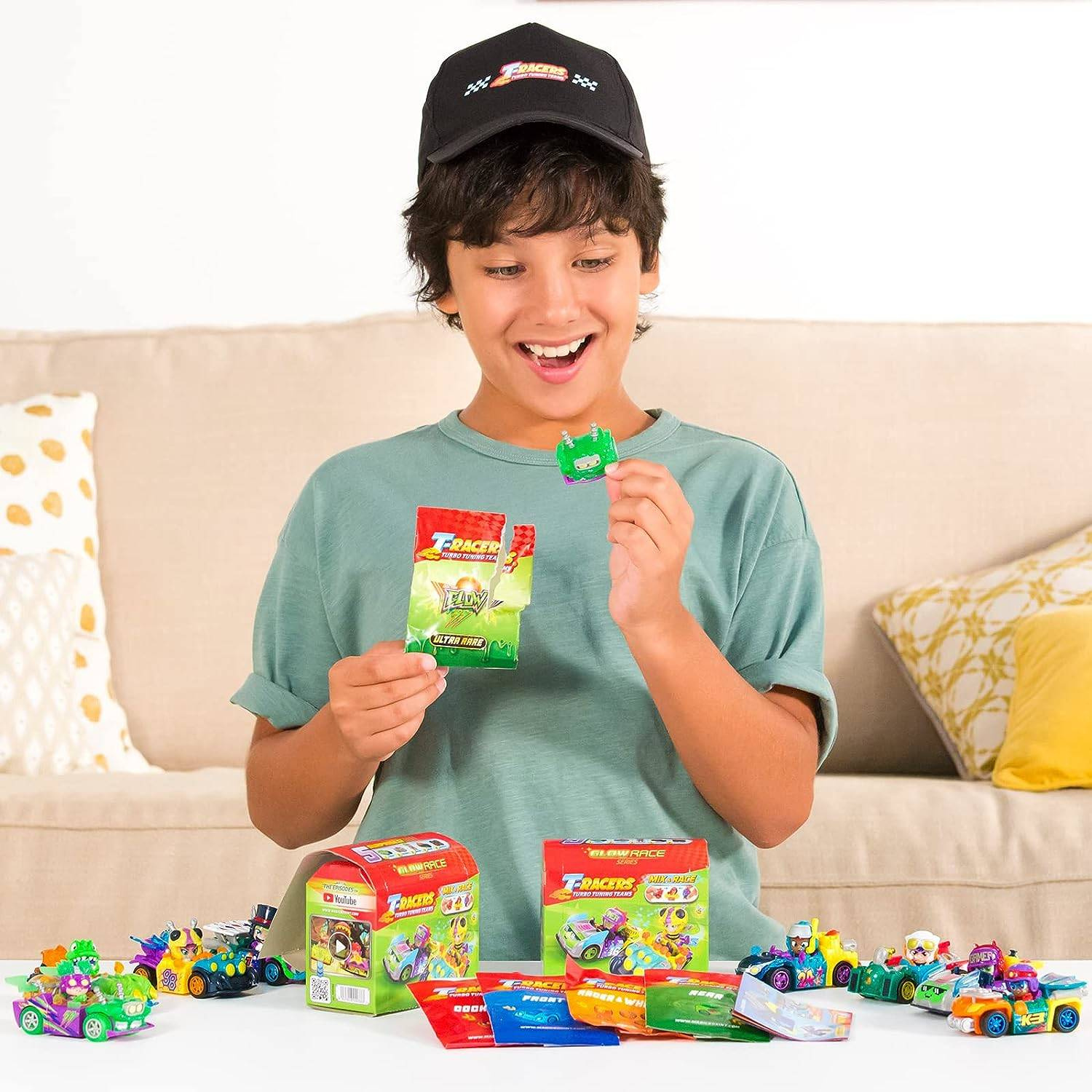 T-Racers powracają w nowej serii Glow Race! Odkryj 8 nowych kierowców do kolekcjonowania, nowe części i ich moce oraz... ogromną liczbę kombinacji! Pamiętaj, że wszystkie części auta można wymieniać z innymi T-Racersami: przód, tył, środek samochodu, koła i kierowców. Czy uda Ci się znaleźć ultrarzadką postać o imieniu Dr Glow? On lekko świeci w ciemności!