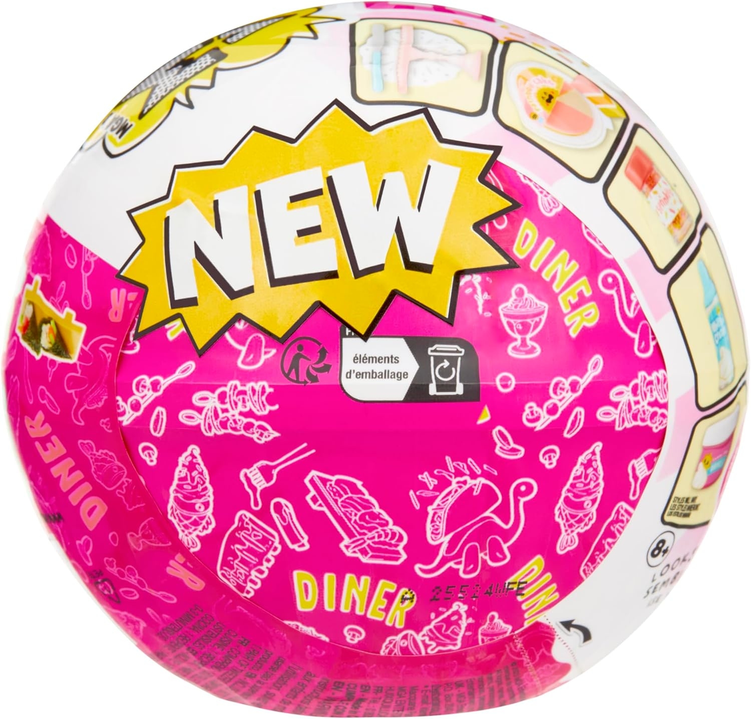 Otwórz kulę-niespodziankę i odkryj unikalny przepis wraz ze wszystkimi potrzebnymi składnikami. Połącz je według instrukcji krok po kroku, a następnie wystaw gotowe danie na co najmniej 5 minut na słońce, aby masa się utwardziła i Twoje mini jedzonko nabrało kształtu.