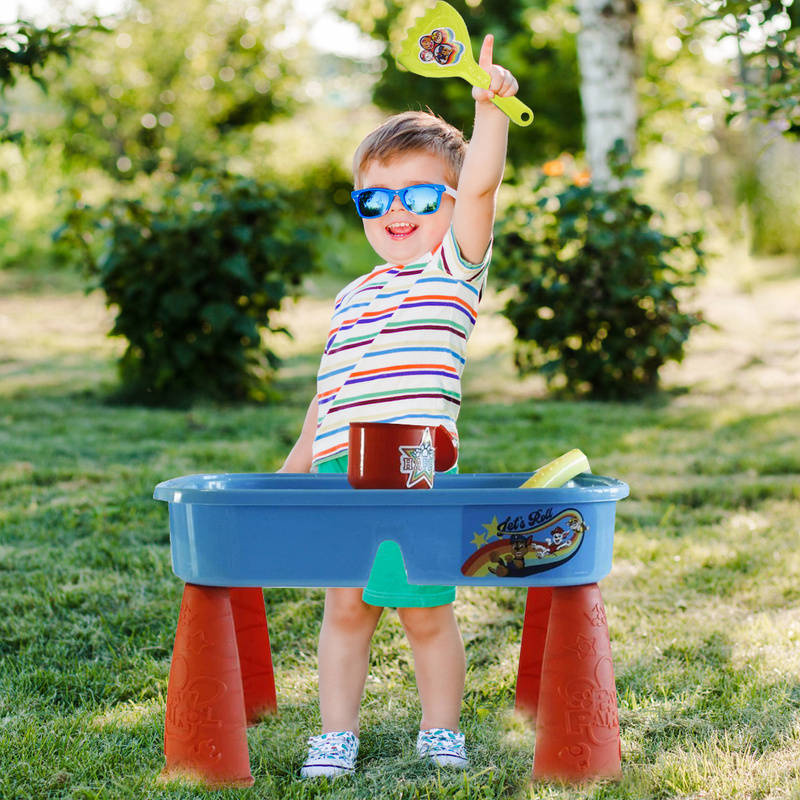 Wyjątkowy, stabilny stolik umożliwia zabawę piaskiem w wygodnym i specjalnie przeznaczonym do tego miejscu. Stolik posiada 2 osobne komory na piasek. Stolik wyposażony jest w łopatkę i foremki o różnych kształtach, co z pewnością urozmaici zabawę. Zabawka idealnie nadaje się do zabawy w ogrodzie, na tarasie, na balkonie, czy w domu. Stolik składa się z łatwych do połączenia elementów. Dzięki łatwej i praktycznej konstrukcji łatwo się przenosi, a piasek pozostaje na swoim miejscu i nawet w deszczowe dni dzieci mogą wspaniale bawić się piaskiem w domu. Wszystkie elementy dekoracyjne dołączone do zestawu ozdobione zostały grafiką Psi Patrol.