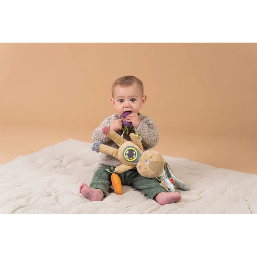 • Ta urocza miękka zabawka i gryzak została zaprojektowana tak, aby zapewnić Twojemu dziecku wielozmysłowe doznania.
