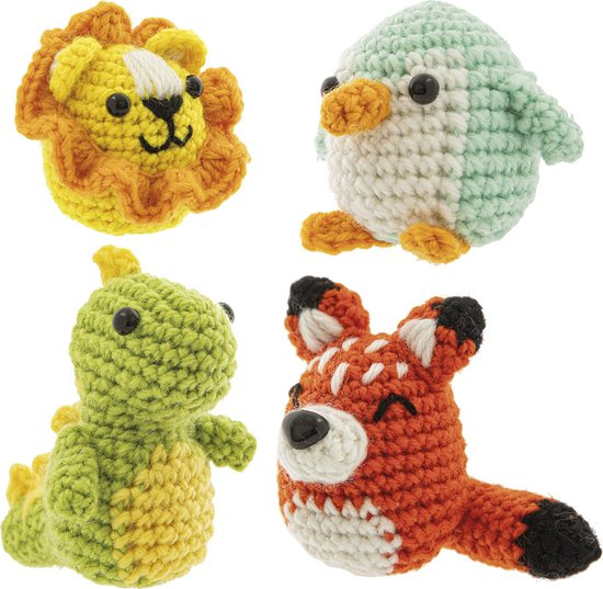 Zestaw do szydełkowania 4 ZWIERZAKI zestaw kreatywny mix DIY CraftID Zestaw do szydełkowania – 4 zwierzaki