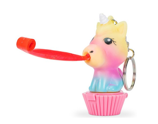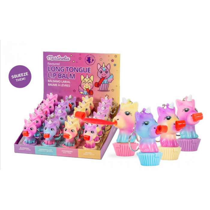 Nawilżający balsam do ust z miękkim, gumowym jednorożcem do ściskania z rozwijanym językiem.
